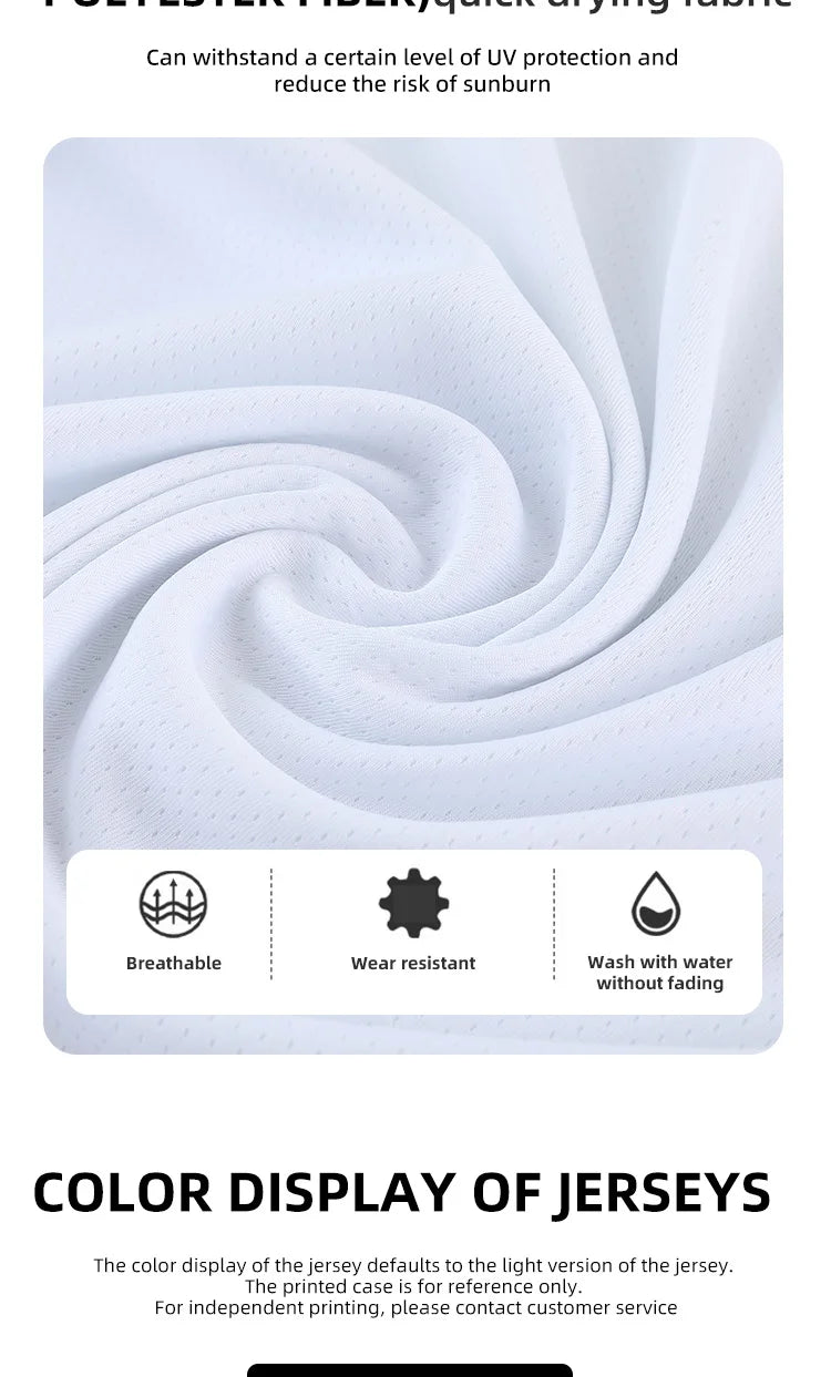 Personalização: Nome, número, logotipo da equipe, patrocinador, símbolo