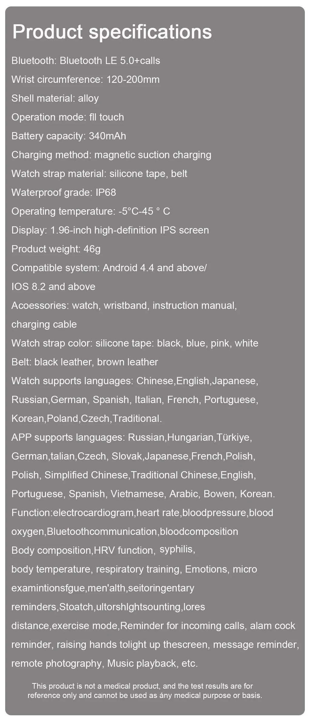 Exercício Funções: Contagem de passos, calorias e distância. Envio rápido: Relógio 100% novo e moderno. Teste de cinco órgãos: Ácido úrico. Para Android: Para iOS: Para Xiaomi: Para Huawei: Para iOS e Android: Para celulares Xiaomi. Funções: Resistente a choques, pedômetro, rastreador de atividades físicas, rastreador de sono, rastreador de humor e mensagens. Lembrete, Lembrete de Chamada, Atender Chamada, Discar Chamada, Notificação Push, Altitude, Turbilhão, Três Ponteiros Grandes, Instruções de 24 horas, Cronógrafo, Despertador, Pequeno Segundo, Hora Mundial, Contador de Calorias, Calendário Permanente, Vários Fusos Horários, Reserva de Energia, Janela de Perspectiva, Semana, Medição de Velocidade, Mês, Monitor de Frequência Cardíaca, Música Interativa, Noctilucente, Termômetro, Calendário, Contagem Regressiva, Calculadoras, Oxímetro